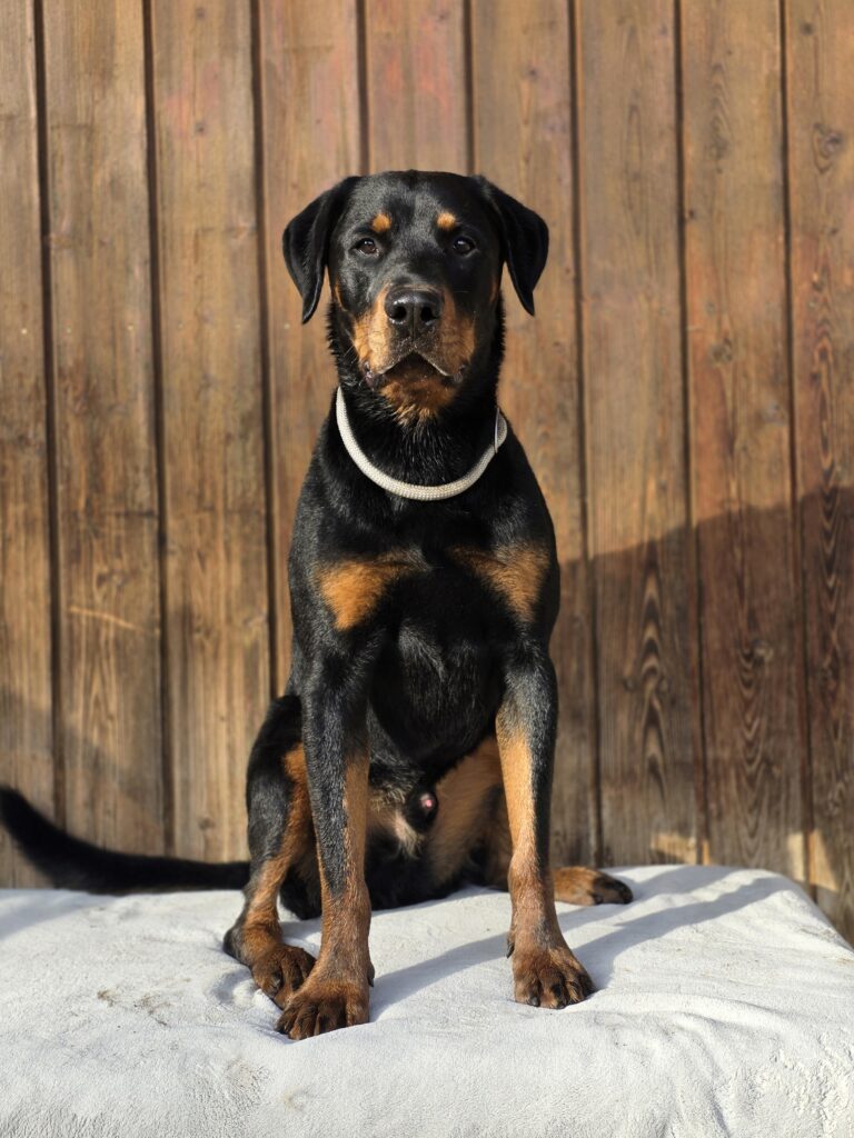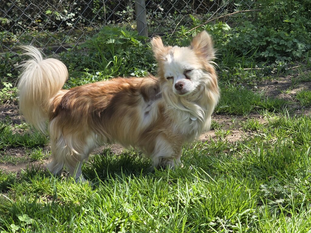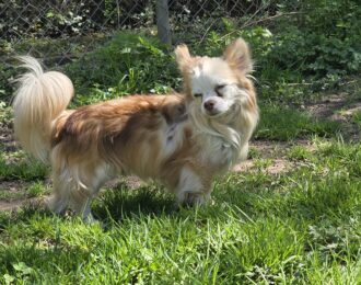 Il est toujours prêt à découvrir de nouvelles choses et aime encore beaucoup apprendre. Malheureusement, il a un gros problème de ressources. Il est très possessif par rapport à sa nourriture et, dans cette situation, il a déjà pincé/mordu.