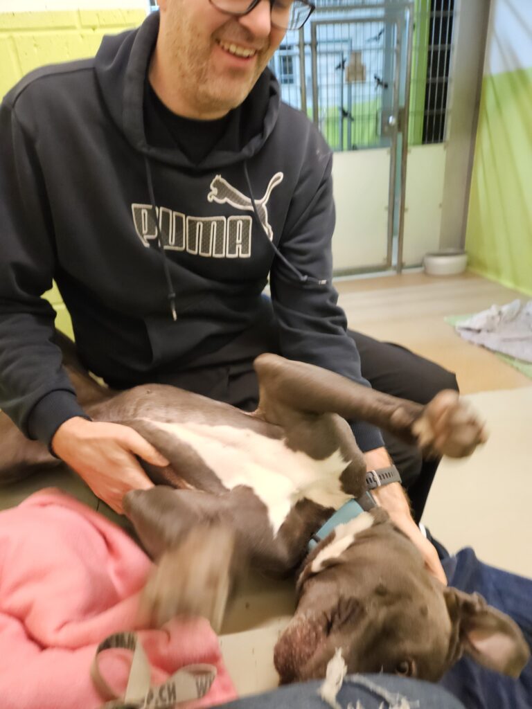 Nous recherchons pour lui des personnes expérimentées en matière de chiens, qui n’essaieront pas de rééduquer Spike en lui mettant la pression et qui lui donneront une chance qui fait sens. Il ne sera pas placé avec des enfants ou d’autres chiens.