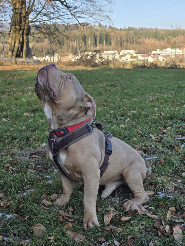 Bei neuen Sachen ist er immer voll dabei und lernt noch sehr gerne. Leider hat er ein grosses Ressourcenproblem. Er ist sehr futterneidisch und hat in dieser Situation auch schon geschnappt/gebissen.