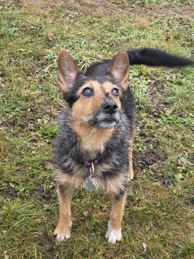 Spike ist ein aufgestellter Hund der noch sehr aktiv ist und es liebt auf interessante Spaziergänge zu gehen.